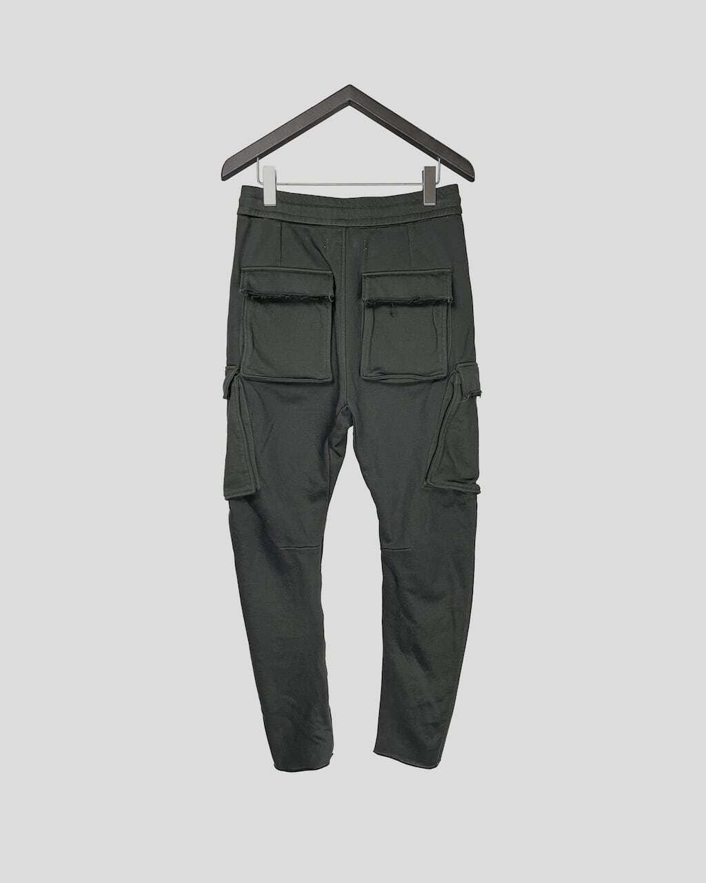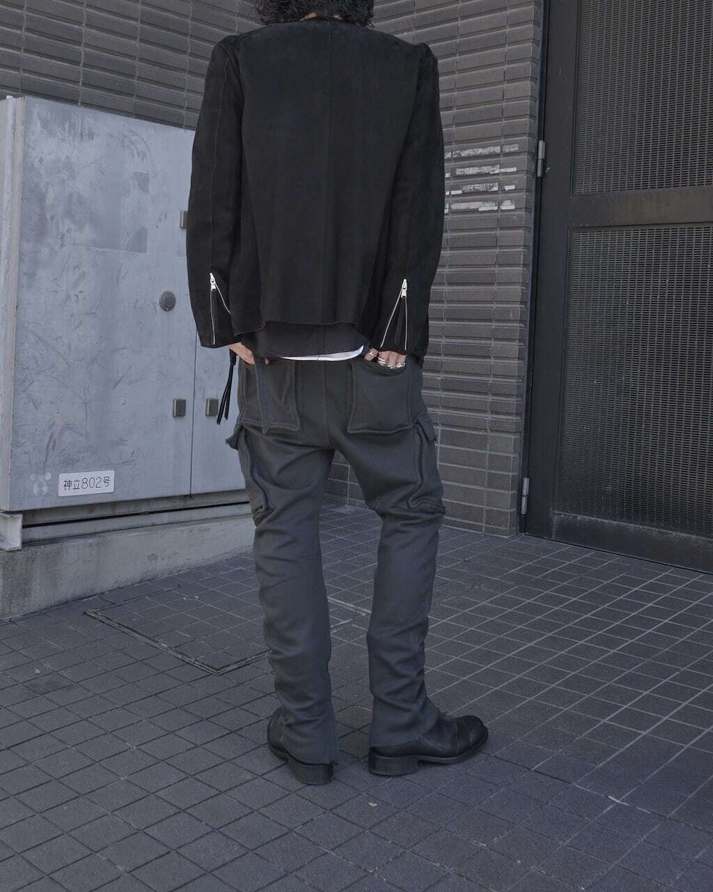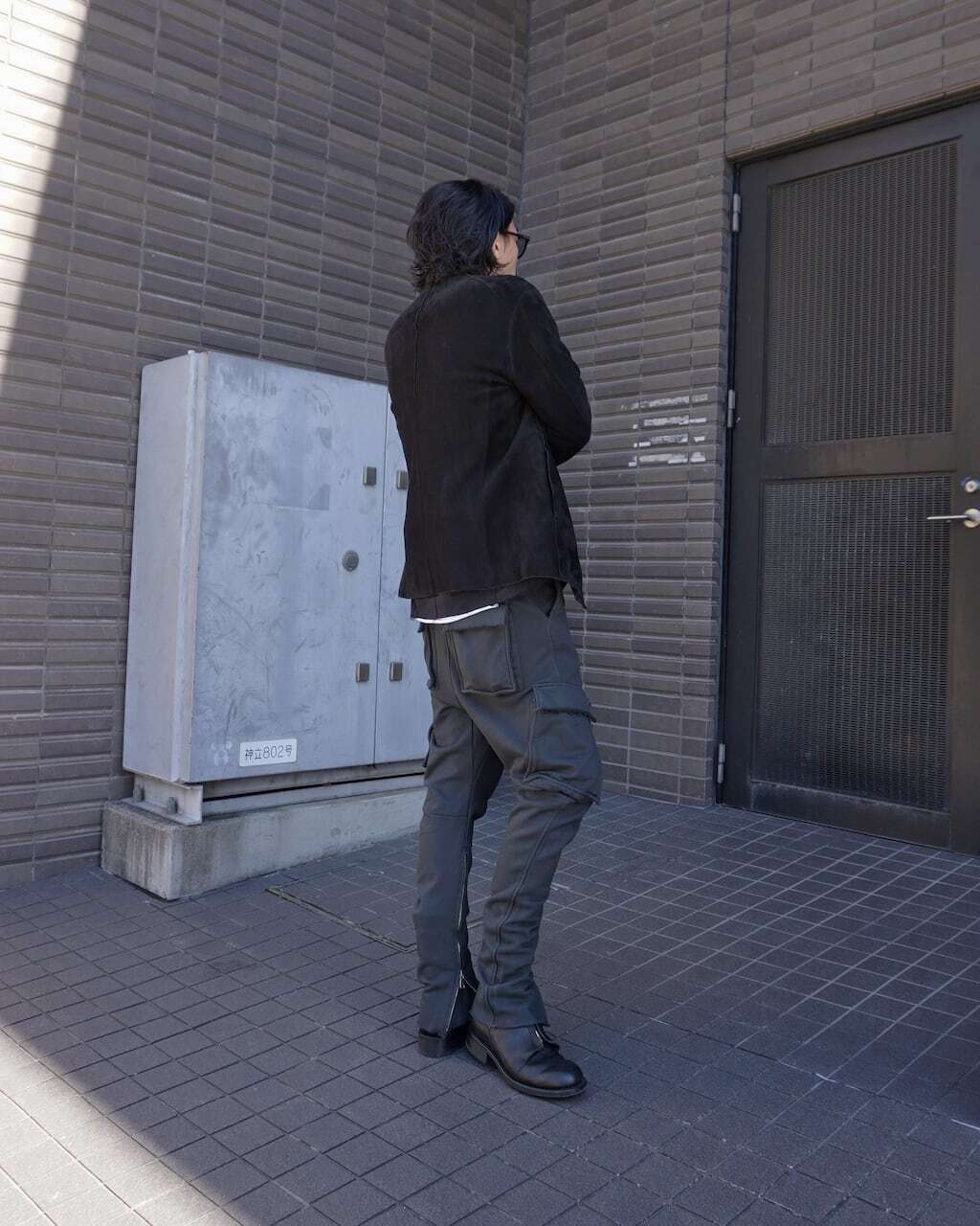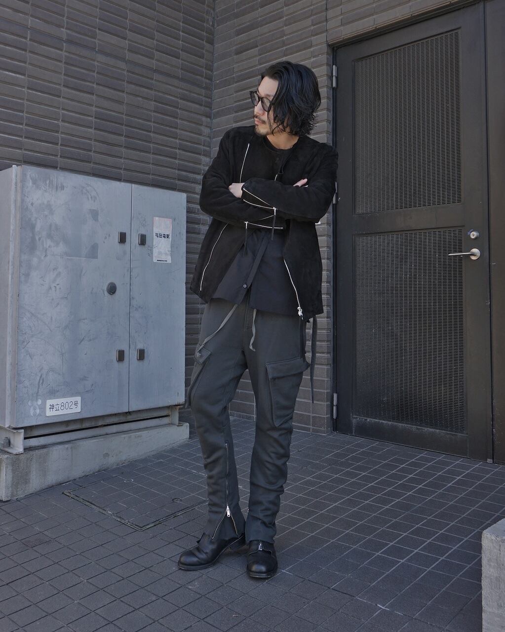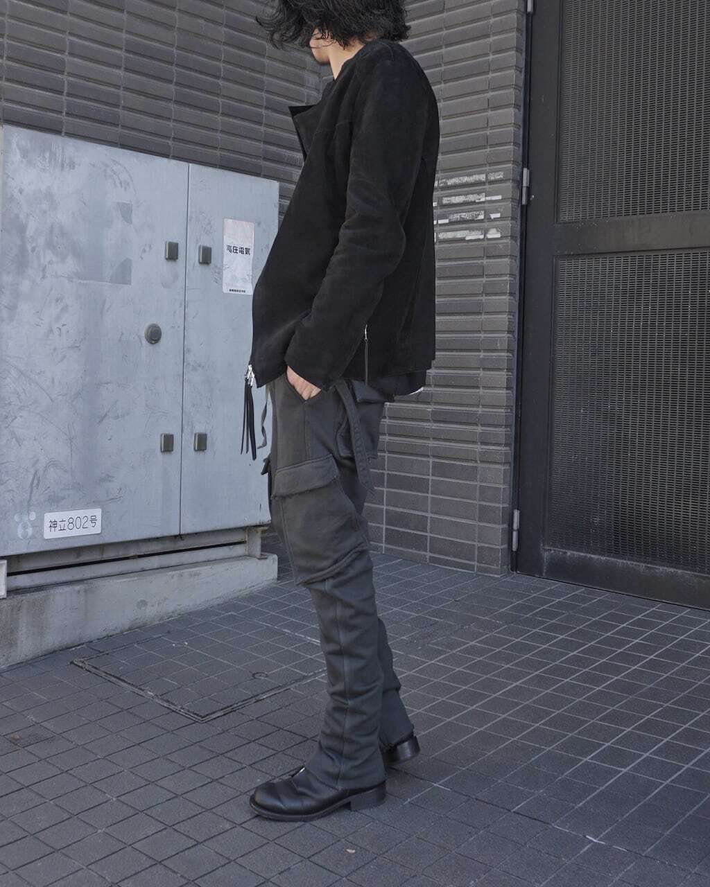 Cargo pants made from sweat fabric that has undergone a product dyeing process to express its unique texture and color tone. Featuring three-dimensional patch pockets and flaps, it exudes a wild impression overall while maintaining a slim silhouette to balance it out. With a slightly deep rise and ample room around the thighs, it is tapered towards the hem but equipped with long zippers, allowing for transformation into a flare silhouette. A new icon strap is attached to the left pocket, while discreet Y embroidery adorns the flap of the right pocket. While remaining a universal cargo pants style, attention to detail, color, and material sets it apart, aiming for differentiation.